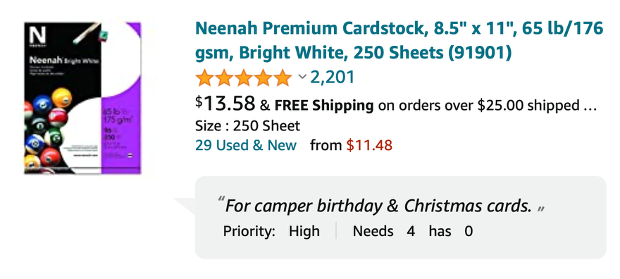 | | Camp Daniel's Wish List is offered as another way for you to donate for specific practical items that we are currently in need of. campdaniel.org. Three ways to give: 1. New - you purchase the item 2. Used - you already have something you'd like to donate 3. Donation to purchase the item Stamps for camper birthday cards Ipads (2017 or newer) Iphones (Iphone 7 or newer) 1x4 inch address labels, 5000/box ($130) Printer Ink - Canon 2660B015AA Original 118 ($147) 12' Enclosed Trailer Stackable washer & dryer for kitchen linens ($1700) Outdoor Log Swing 3X ($230) Two Stage Snowblower 2X